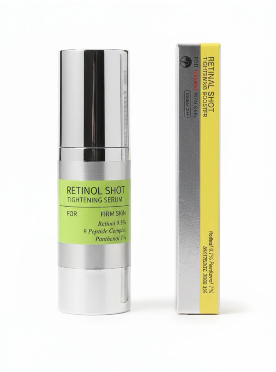 Celimax Retinol Shot Tightening Serum (30ml) Anti-age + Qattiqlashtiruvchi Teri elastikligini oshirish, ajinlarni kamaytirish va yoshartirish uchun mo‘ljallangan kuchli retinol serumi. Asosiy ta’siri: Teri qattiqligini oshiradi Mayda ajin va chiziqlarni kamaytiradi Kollagen ishlab chiqarilishini rag‘batlantiradi Teri rangini bir tekis qiladi 2) Celimax Retinal Shot Tightening Booster (20ml — ko‘z osti uchun) Ko‘z osti terisini yoshartiruvchi kuchli booster Retinal asosidagi kuchli formula ko‘z osti ajinlari, quyuqlik va shishlarni kamaytirishga yordam beradi. Asosiy ta’siri: Ko‘z osti mayda ajinlarini kamaytiradi Teri elastikligini oshiradi Yorqinlik beradi va quyuq halqalarni kamaytiradi Shishlarni pasaytirad